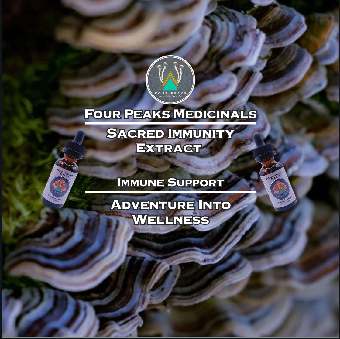 Four Peaks Medicinals, Sacred Immunity Blend is made with Turkey Tail Mushrooms.